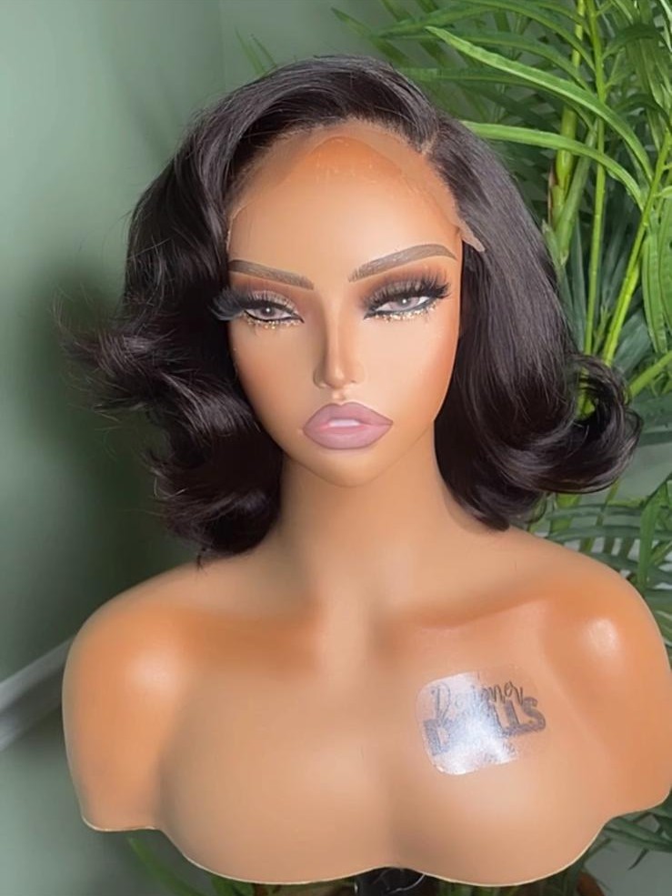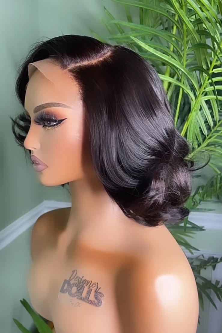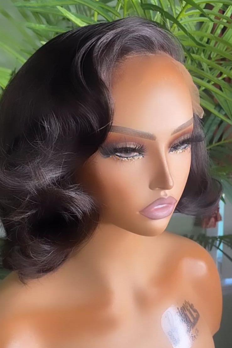 6 x 6 Forever Glue-less Bodywave Side Part Bob 8-10” ( Styled W/ Layer & Light Curls )